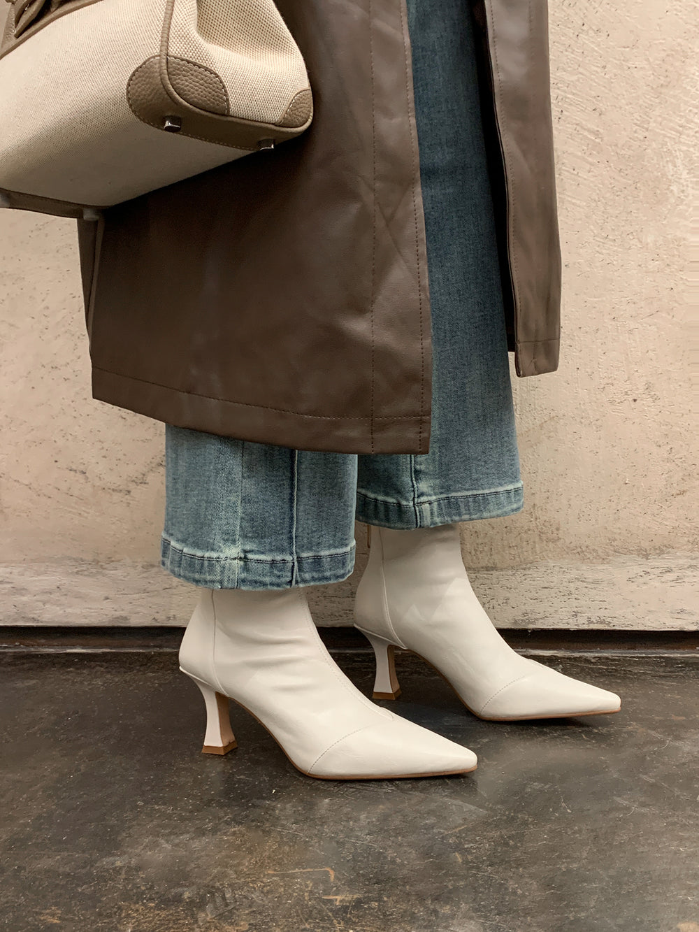 발렌티나(The Valentina) 스틸레토 스판 앵클부츠 (7.5cm) - 크림아이보리